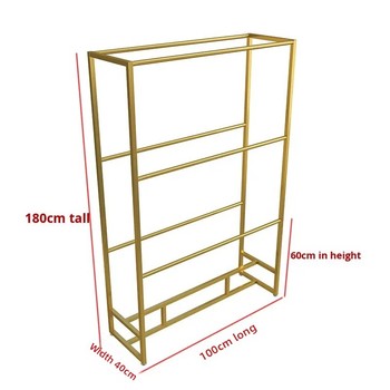 יוקרה אי זהב ברזל בגדים לעמוד מתלה עץ mdf עם ציפוי אבקה לאחסון תצוגה בחנויות וסופרמרקטים